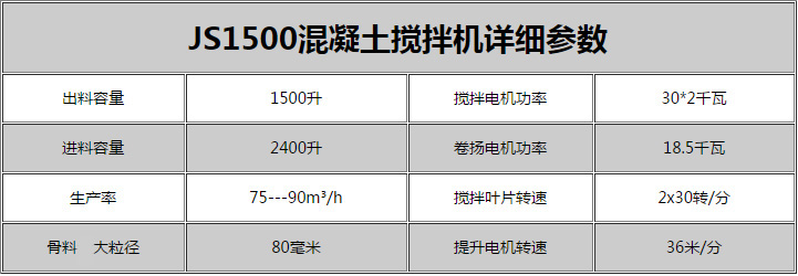 js1500混凝土攪拌機主要用于HZS75/90混凝土攪拌站主機,生產(chǎn)能力75/90m3/h,價格咨詢:13298133255(微信同號)。