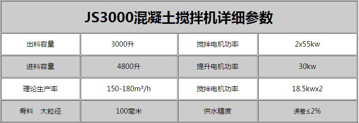 js3000混凝土攪拌機(jī)主要用于HZS180混凝土攪拌站主機(jī),生產(chǎn)能力180m3/h,價(jià)格咨詢:13298133255(微信同號(hào))。